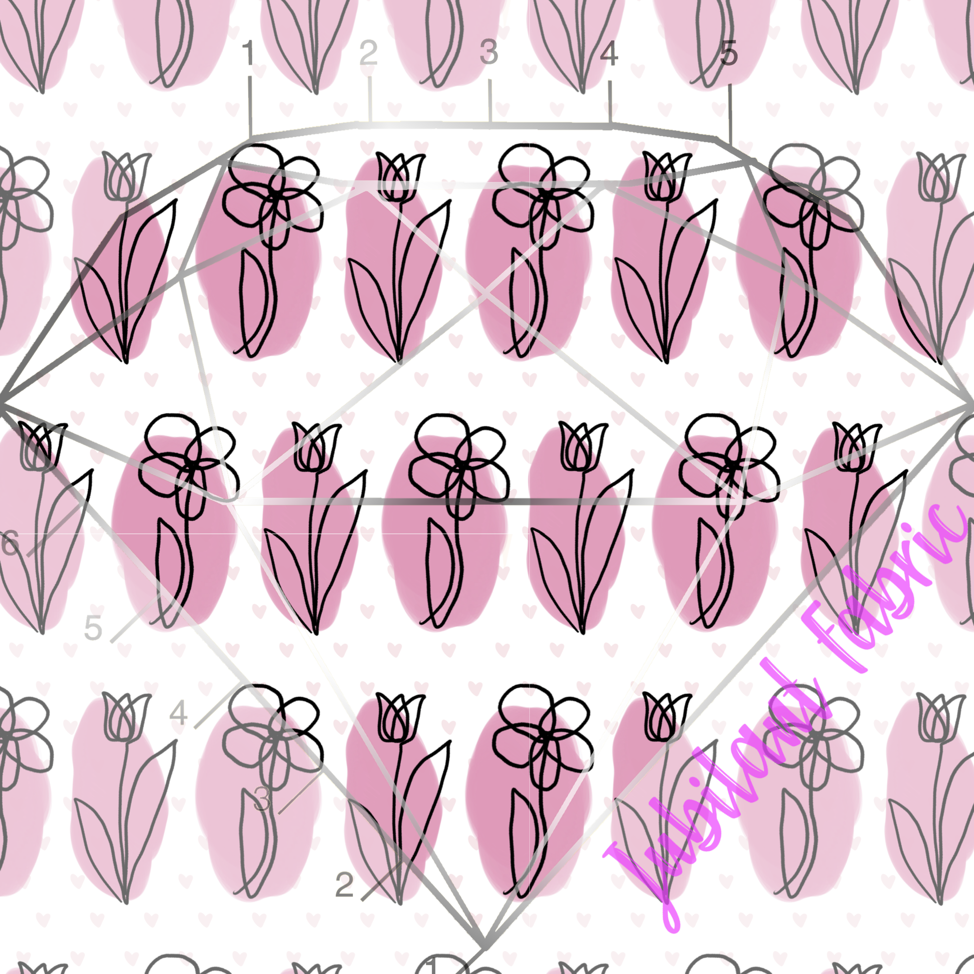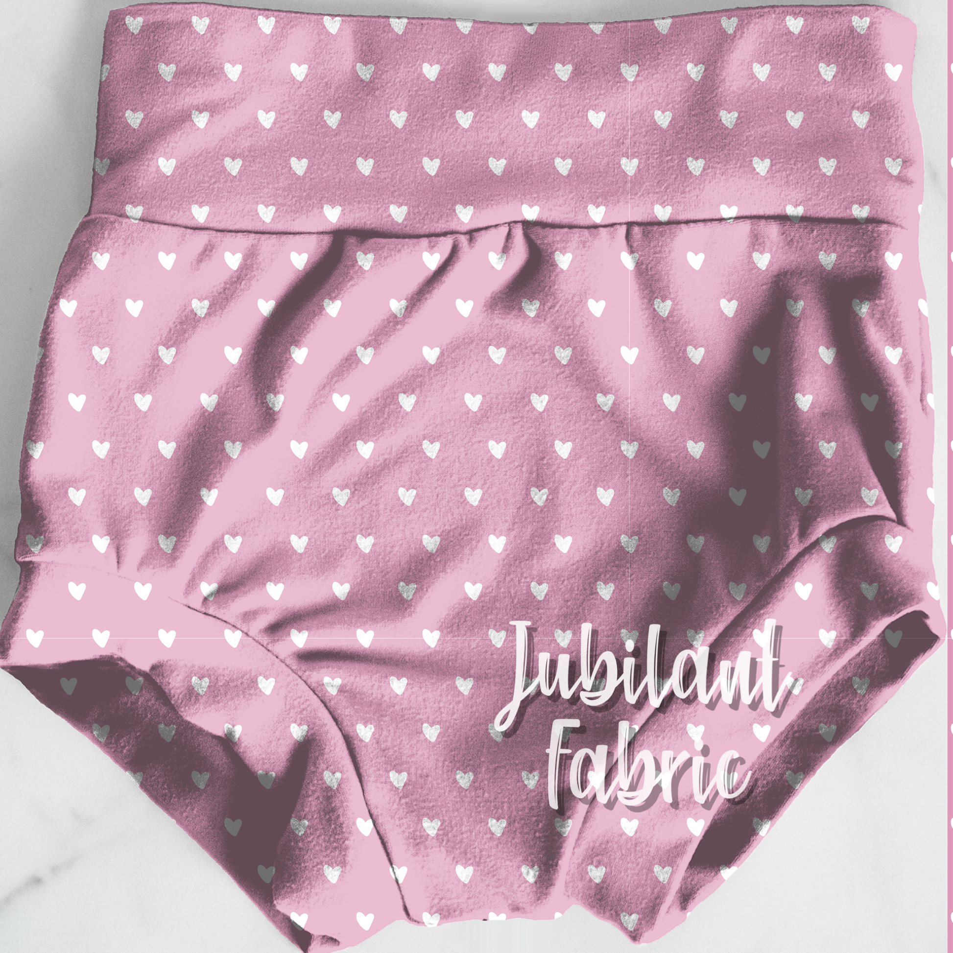 Pretty drawn flowers on pink splatters and a heart background. Solid pink with white coordinate to match